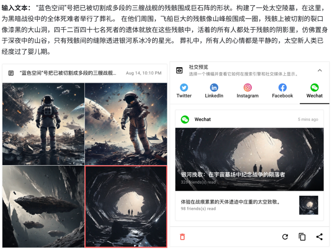 和市面上需要写好提示词才能出图的 AI 绘画工具不同, BestBanner 可以直接根据用户提供的一段文案、一段博客文章、一个短篇小说,生成相关的、可以使用的、不涉及版权问题的图像。这是由 Jina AI 自身的需求出发的产品,他们有高产的技术博客需要配图,但使用设计师有些大材小用,而选图可能贴合度不高。