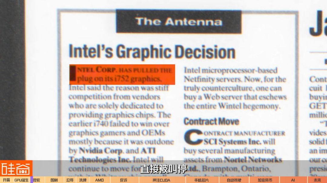 英特尔其实也看到了GPU崛起的趋势,1998年尝试研发过一次单独的图像独立显卡,也被有些人称为最早的GPU之一,叫i740,但市场反应非常不好,没成功;之后一年在推出升级版i752的时候,直接被叫停,之后英特尔放弃了独立显卡。