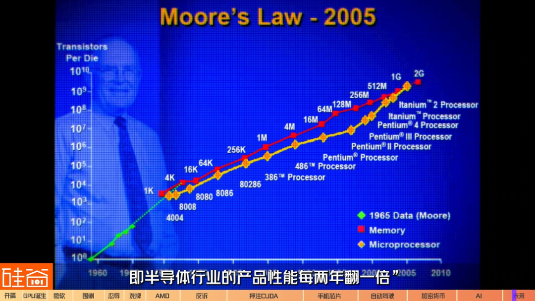 2005年,英特尔制定了“钟摆计划”。当时,英特尔公司创始人之一、76岁的戈登.摩尔提出了摩尔定律,制定了英特尔处理器微架构和芯片制程更新的时间线。他预测,“芯片上的晶体管每24个月翻一倍,即半导体行业的产品性能每两年翻一倍”。