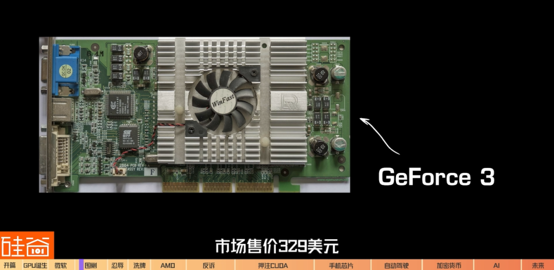 2000年,在商业合作方面,微软为了进军游戏主机行业、与任天堂和索尼展开直接竞争,就找到了英伟达,让他们成为当时还是秘密项目的Xbox的GPU提供商。拿下微软这个重要的订单,英伟达可以说是干劲十足。