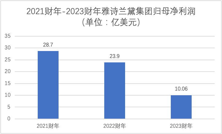 2023财年,雅诗兰黛集团实现净销售额159.1亿美元,同比下降10.3%;归母净利润10.06亿美元,同比下降58%。