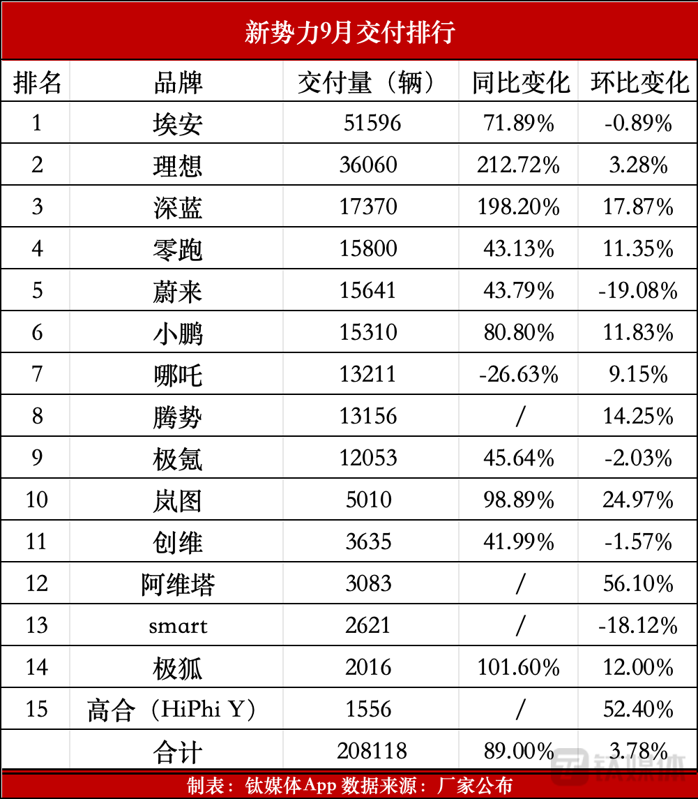 值得指出的是,本次统计的9月交付量都为新势力主动公布,言外之意是这些主动公开的交付量或多或少都有可说道的亮点。而选择不公布9月交付量的新势力,大概率是本月的表现不尽如人意。据了解,目前还未公布9月交付量的新势力有问界、智己、飞凡等。