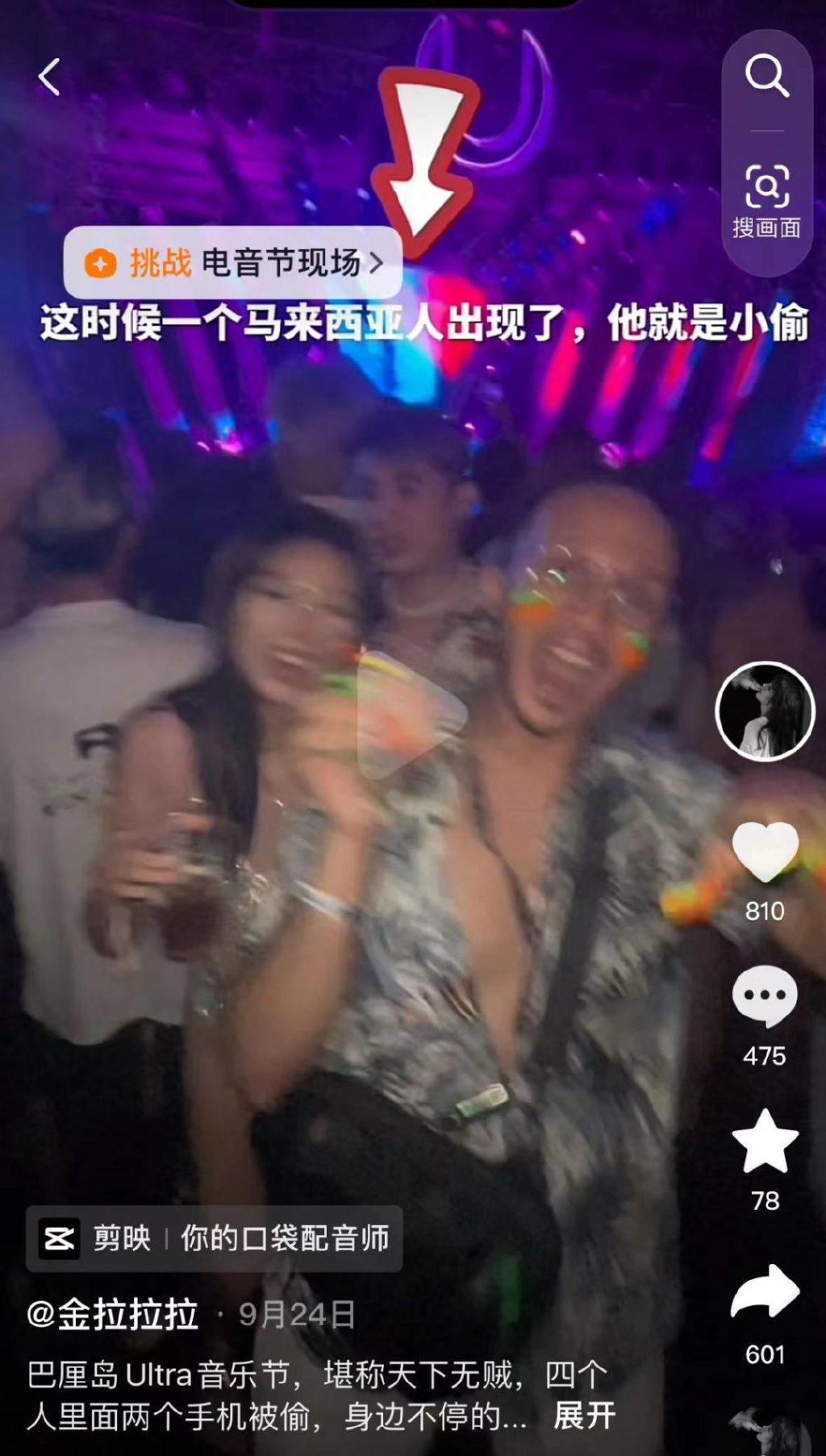此前的南京“青空音乐节”,除了乐队演出外,几乎处处成为乐迷口中的槽点,现场音响设备更是被广大网友吐槽还不如“家里20块钱买来的低音炮外放”。此外,今年9月底于巴厘岛举办的大型电音节Ultra也未能避免大规模团伙作案。抖音ID为“金拉拉拉”的博主在平台发布了自己在巴厘岛电音节时拍摄的一段“蹦迪”视频。视频显示,在朋友为其拍摄视频的过程中,一位男子将手伸入博主双肩包内,盗走手机。而全程录制的朋友及博主本身都未能察觉。在该条视频评论区,该博主补充道,当天手机被盗的除了自己,还有不少人,而在选择报案后,盗贼团伙展开报复作案,又偷走了朋友的手机。