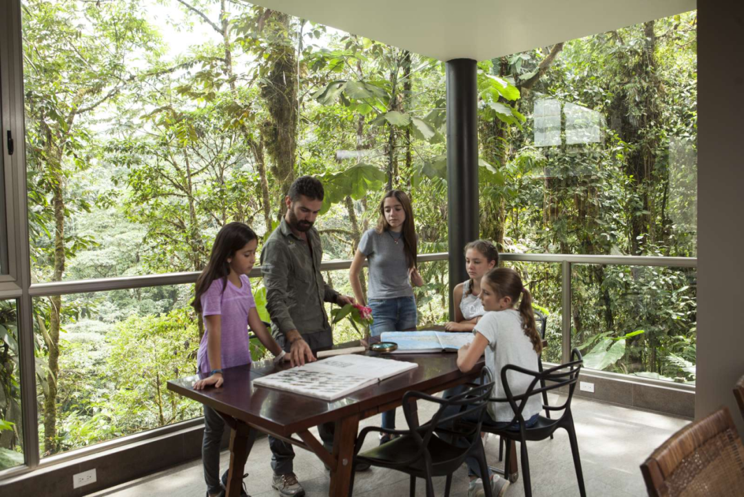 在厄瓜多尔首都基多打车 3 小时的森林保护区里面的一家旅馆 Mashpi Lodge,主打的就是「认识自然」。这个旅馆也有驻地的生物学家和植物学家,他们就住在旅行者附近。作为旅行你可以直接在旁边的实验室,看看专家都在研究什么,并且跟他们了解当地情况。实验室的内部空间陈列着无数展品,如两栖动物和爬行动物玻璃容器以及固定的昆虫,包括色彩鲜艳的蝴蝶、蜜蜂和虫子,都是当地物种。
