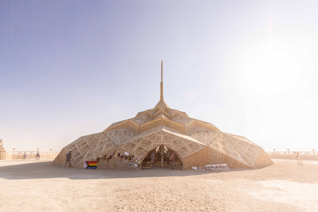 这里不得不提火人节,熟知科技圈的人估计都听腻了——每年 8 月,有 7 万人一起在内华达沙漠,共建一个只存在一周的「黑石城」,主打的就是社区共建,自力更生和艺术表达。建好之后,城内有 24 小时不停歇的音乐文化活动、派对、巨型艺术装置和展览馆。一周之后,大家会把这个城市拆除(烧掉),明年再来一次。