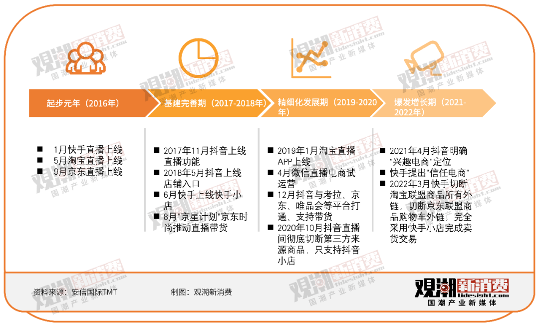 盘点电商直播进化史,观潮研究院拆解出几种主流的直播电商范式代表。