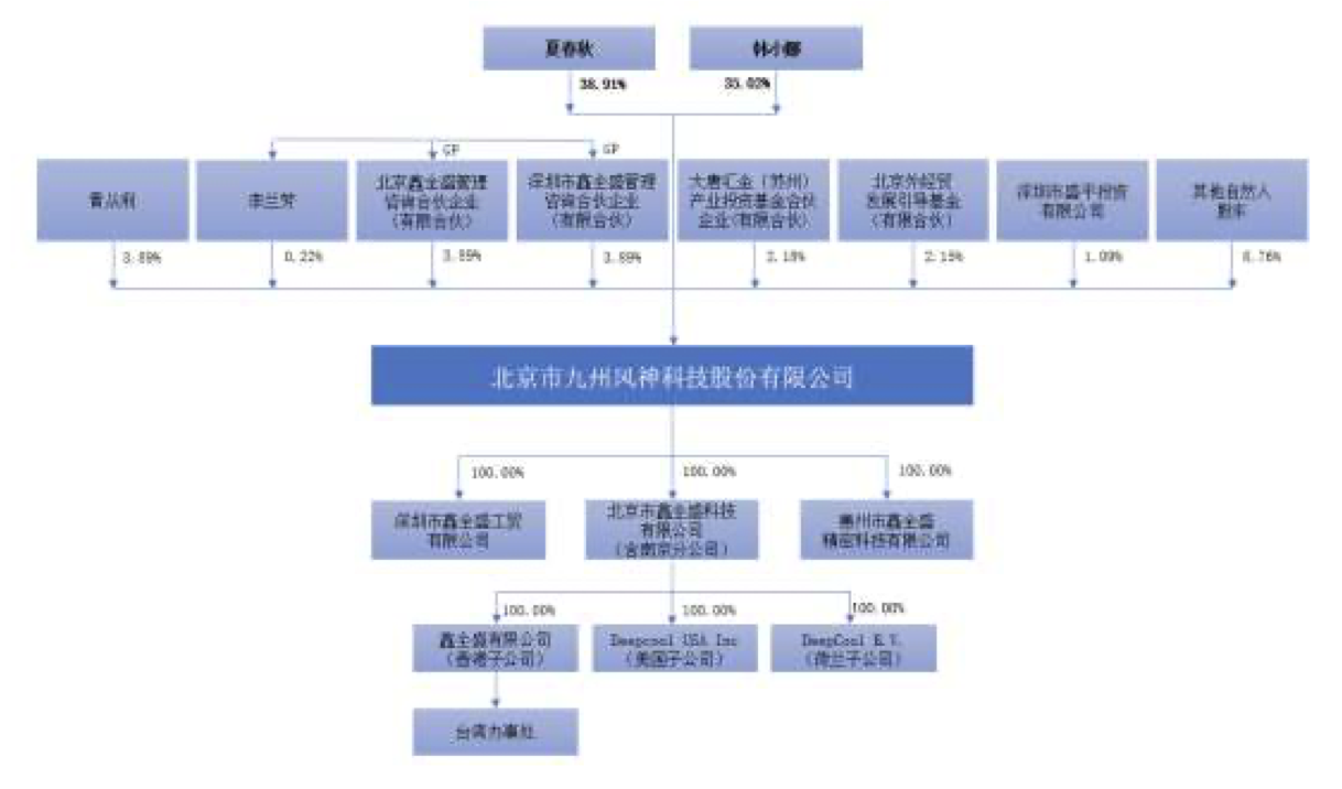 九州风神提交的上会稿显示,公司实际控制人夏春秋直接持股38.91%,妻子韩小娜直接持股35.02%且有部分间接持股,合计77.82%。