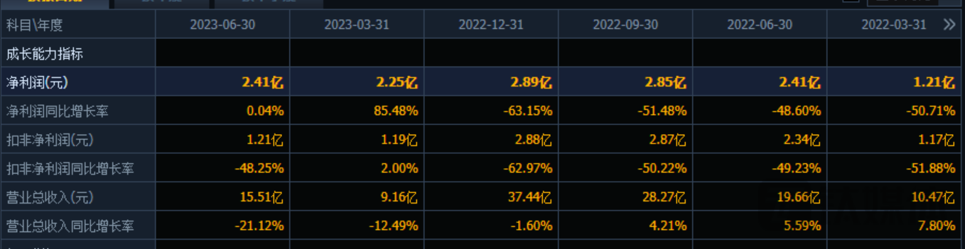 表面上,公司2023年上半年实现净利润2.41亿元,与上年同期持平,不过净利润中包含1.33亿元资产处置收益和5365.1万元的投资收益,因此扣非净利润同比下滑近五成。