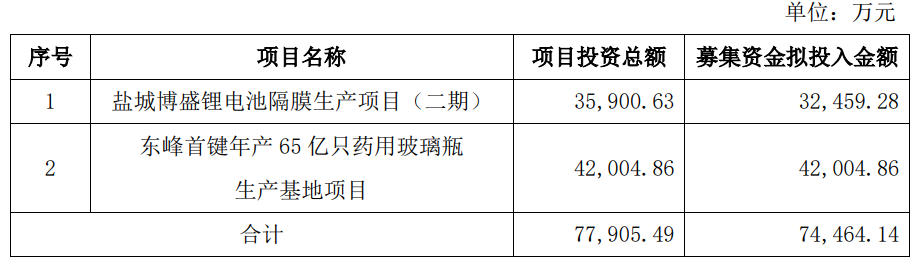 公司于今年9月23日审议通过以自有资金全额补足公司已划转原项目实施主体湖南福瑞募集资金专户本金及其利息净收入,并将原募集资金投资项目之一的“湖南福瑞高端包装印刷智能工厂技改搬迁建设项目”变更为“盐城博盛锂电池隔膜生产项目(二期)”及“东峰首键年产65亿只药用玻璃瓶生产基地项目”。
