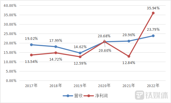 事实上,2022年,公司业绩就出现明显下滑,扣非净利润同比下滑超六成。2022年年报显示,公司实现营业收入37.44亿元,同比下降1.6%;净利润2.89亿元,同比下降63.15%;扣非净利润2.88亿元,同比下降62.97%。