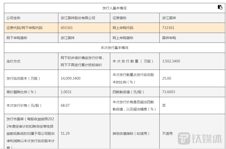 需要说明的是,嘉实基金以81.94元/股较公司此次的发行价69.07元/股溢价了18.63%,而广东大兴华旗资产管理有限公司更是拟以103.5元/股的价格对浙江国祥进行申购,溢价率高达50%。有关上述问题,钛媒体APP发函至公司,但截至截稿,仍未收到公司的回复。(本文首发于钛媒体 APP,作者|邓皓天)