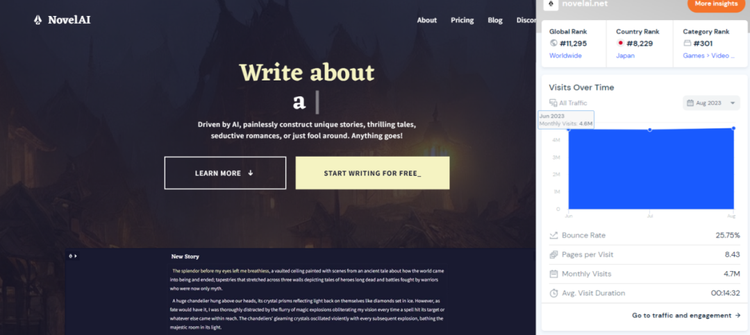 Novel 界面截图,流量统计|图片来源:NovelAI、SimilarWeb