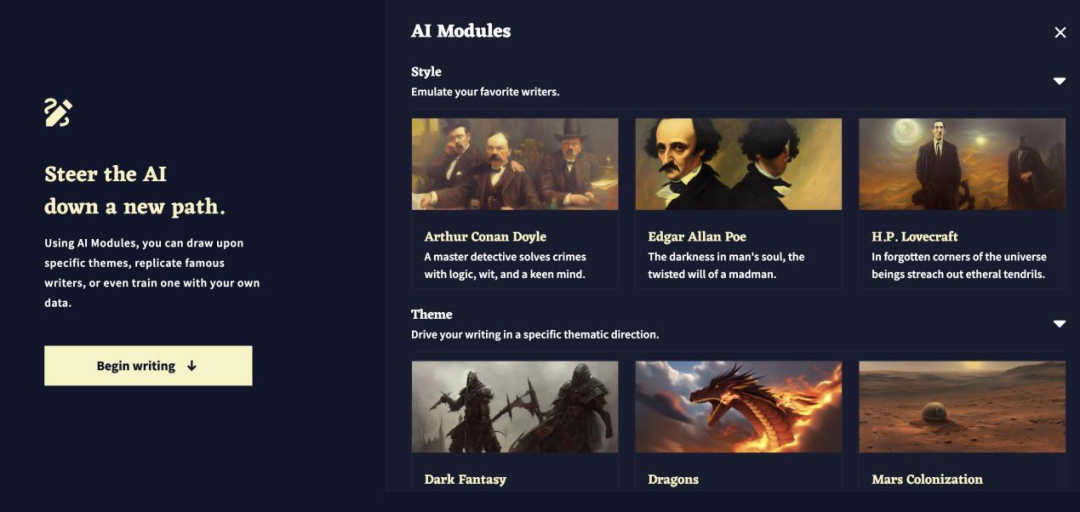 两款 AI 小说创作产品的区别在于,一个典型的二次元风格,一个则偏向于欧美文学,另外在 NovelAI 的订阅权益当中,用户可以选择让 AI 模仿不同风格的作家进行写作,也可以通过选项控制文本的剧情走线与主题,而 AI-Novel 则没有这个功能。但模仿不同风格的写作,在现在来看,风险还是相当大的,前几天《权力的游戏》的作者刚把 ChatGPT 告了。