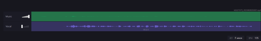 而 VocalRemover 的使用范围更小一些,主要是在音乐方面。用途如 App 的名字,可以将音乐中的人声与音乐分离,来生成伴奏,此外还有更高阶的人声、鼓声、乐器声分离的功能。此外,它也具有普通音乐编辑器的功能,包括合并音轨、剪辑、变调等,是 Top50 榜单中唯一一款 AI 音乐产品。