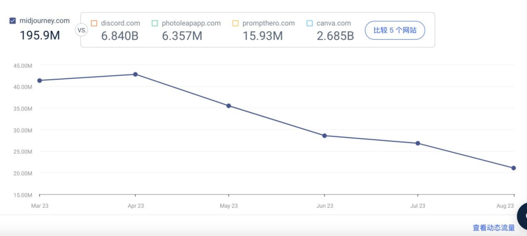 Midjourney 流量趋势|图片来源:SimilarWeb