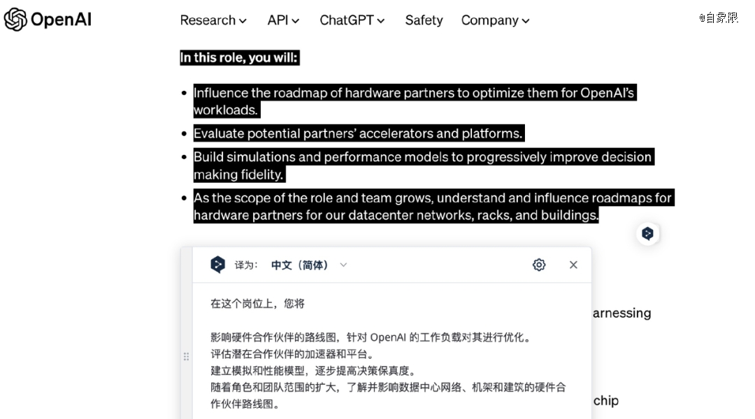 据「自象限」通过OpenAI官网的几则招聘信息中发现,目前,OpenAI已经开始招聘硬件工程师,用于评估和共同设计人工智能硬件。