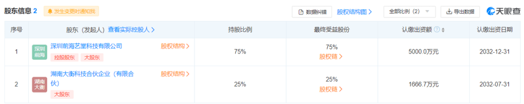 其中,深圳前海艺堂科技有限公司也是零零玖的大股东,持股比例75%,认缴出资额5000万元。许莉任公司执行董事和总经理,周先带任监事。