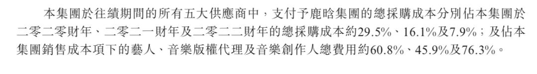 这几年来,风华秋实支付鹿晗集团的采购成本占集团总采购成本的比重也在逐年下降;2020年为29.5%;2021年为16.1%;2022年更是低至7.9%。