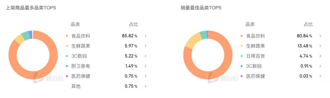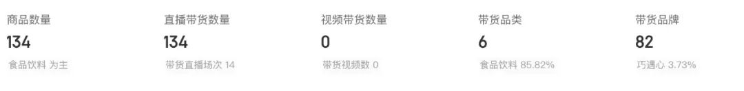 带货的商品数量百余种,包含食品饮料、生鲜蔬果、3C数码等。