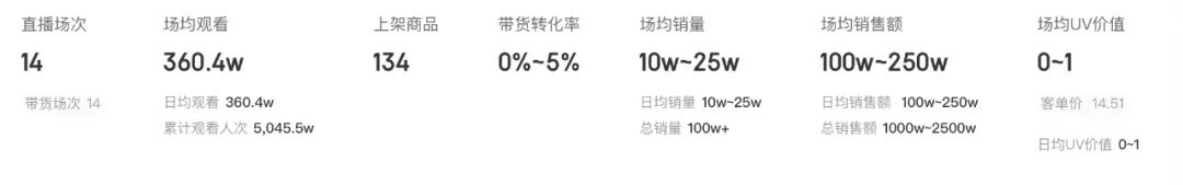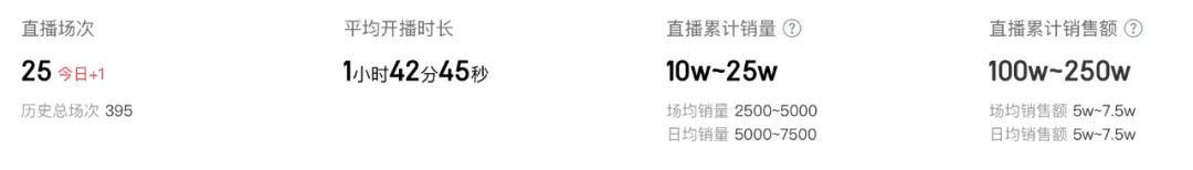 鹿哈直播场均观看达到360.4万,场均销量10万至25万区间。