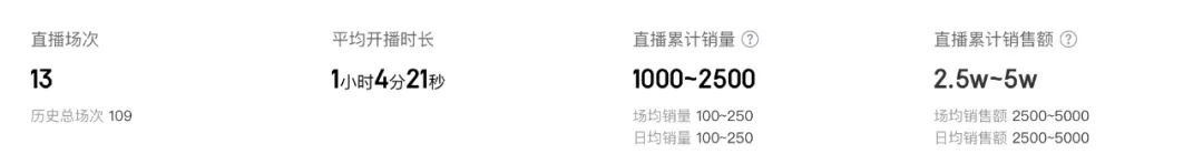 过去30天,“黄子诚”直播13场,累计销量1000至2500,累计销售额2.5万至5万。