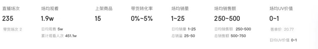 数据显示,过去180天内,“王俊卡”直播场次达到235次,其中带货场次2次;场均销量只有1至25,场均销售额仅250至500.