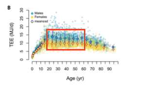 研究者研究了来自29个国家的6421名研究对象后,将他们人体的基础能量代谢值分为“急速生长期(1岁以内)”“青少年期(1-20岁)”“成年期(20-60岁)”和“老年期(60岁以上)”四个阶段。