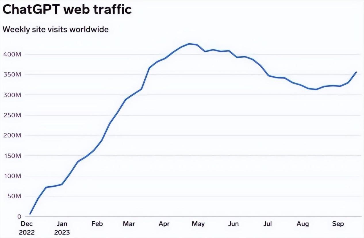 拿ChatGPT来讲,ChatGPT一举引爆了生成式AI赛道,可如今已然出现了流量下滑。网站分析工具SimilarWeb的数据显示,网页版ChatGPT的月活数据已经连续第3个月呈现下滑趋势。其中,6月下降了9.7%,7月下降了9.6%。尽管8月数据有所回升,但环比用户数仍旧下降了3%,浏览量也从5月的19亿下滑至7月的15亿。