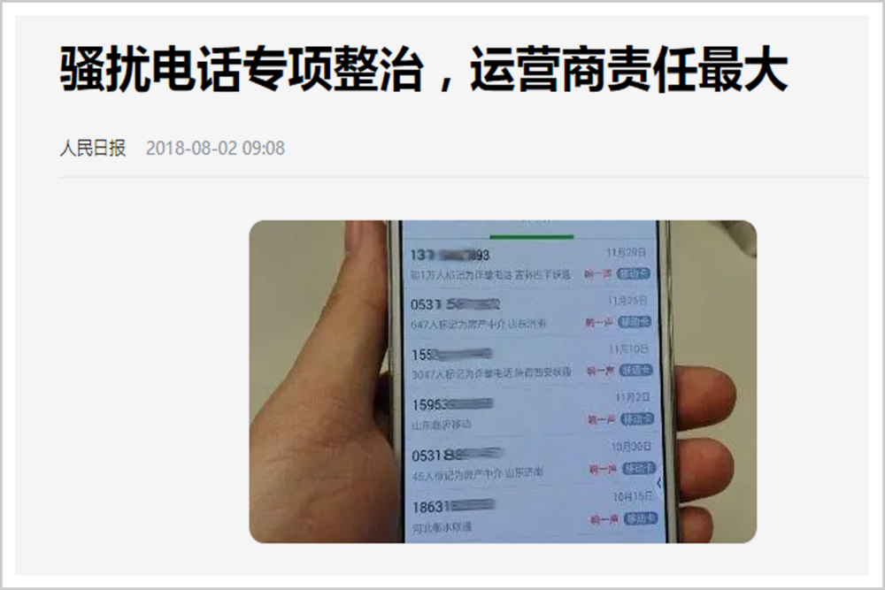 实际上,2018年工信部“两大方案”一出,《人民日报》就转载《钱江晚报》的评论表明态度,直指运营商是“最大责任人”,甚至前瞻地指出,判定骚扰电话并不难,难的是阻断背后的利益链。
