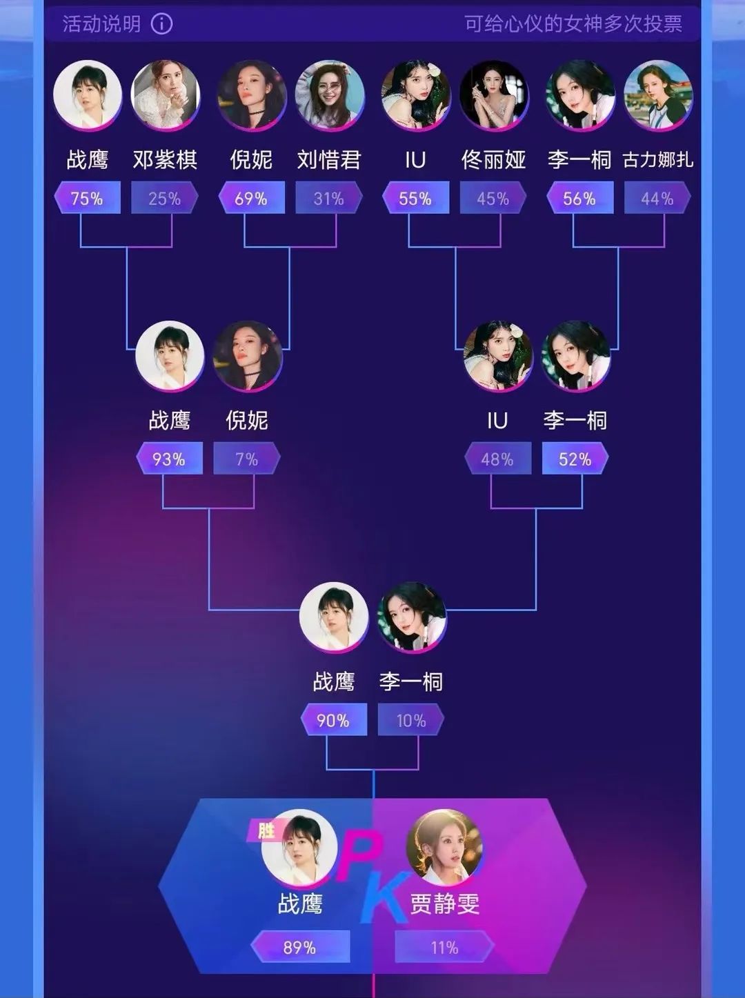 也正因如此,即便后来围棋棋手战鹰、柯洁并未展现出相应的特质,但也因战鹰败绩居多、直播讲棋未能逃脱被抽象化的命运,最终在直播间打不过就加入,以消解地位的“发疯”来满足看客。最为典型的,便是战鹰在“乐子人”的狂欢下力压邓紫棋一跃成为“虎扑女神”,以及由此衍生出的“战鹰终于赢棋了,只不过是邓紫棋”热梗。