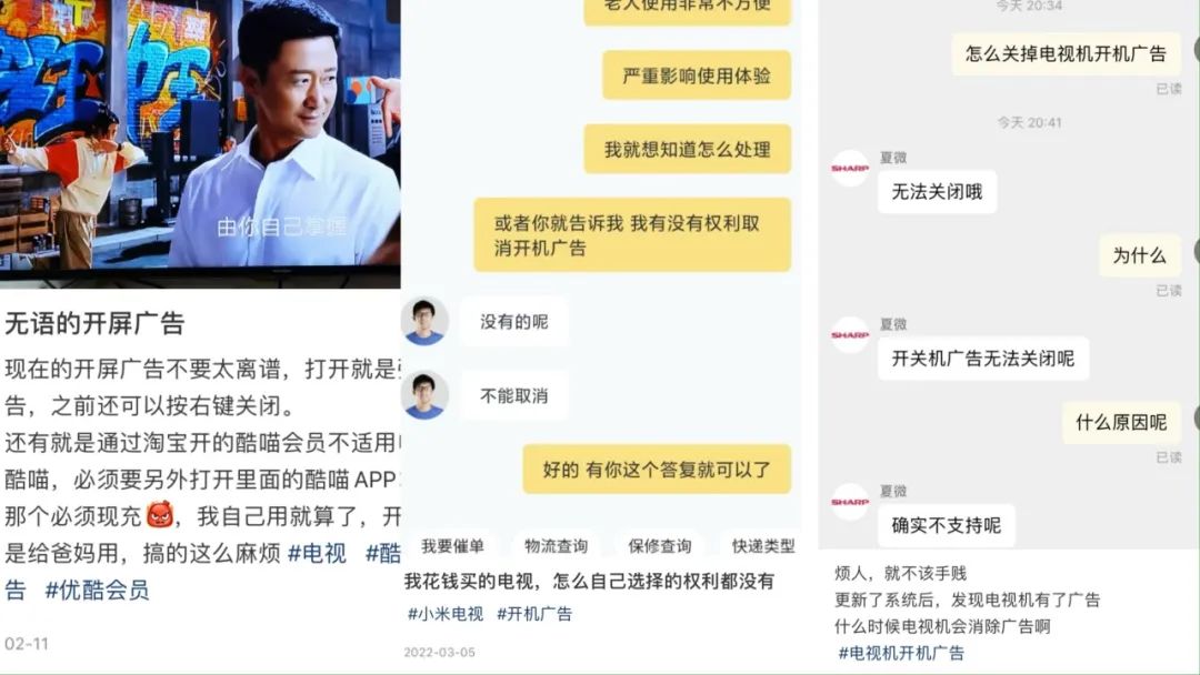 事实上,不仅敏仪为电视开机广告所困。锌刻度留意到,在小红书、微博和知乎等社交媒体平台,不少人对电视机的开机广告都满腹怨气。