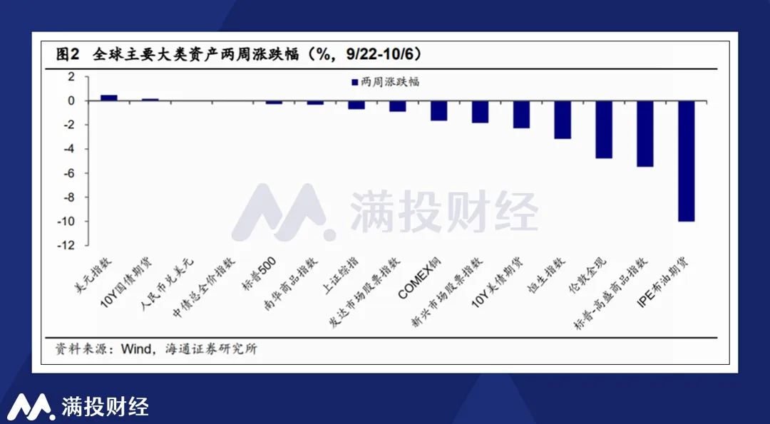 9月下旬以来,受到美国经济数据的强势表现以及美联储降息预期时间点移后的影响,全球主要资产承压,股指、债市、大宗商品的表现度整体都比较低迷。