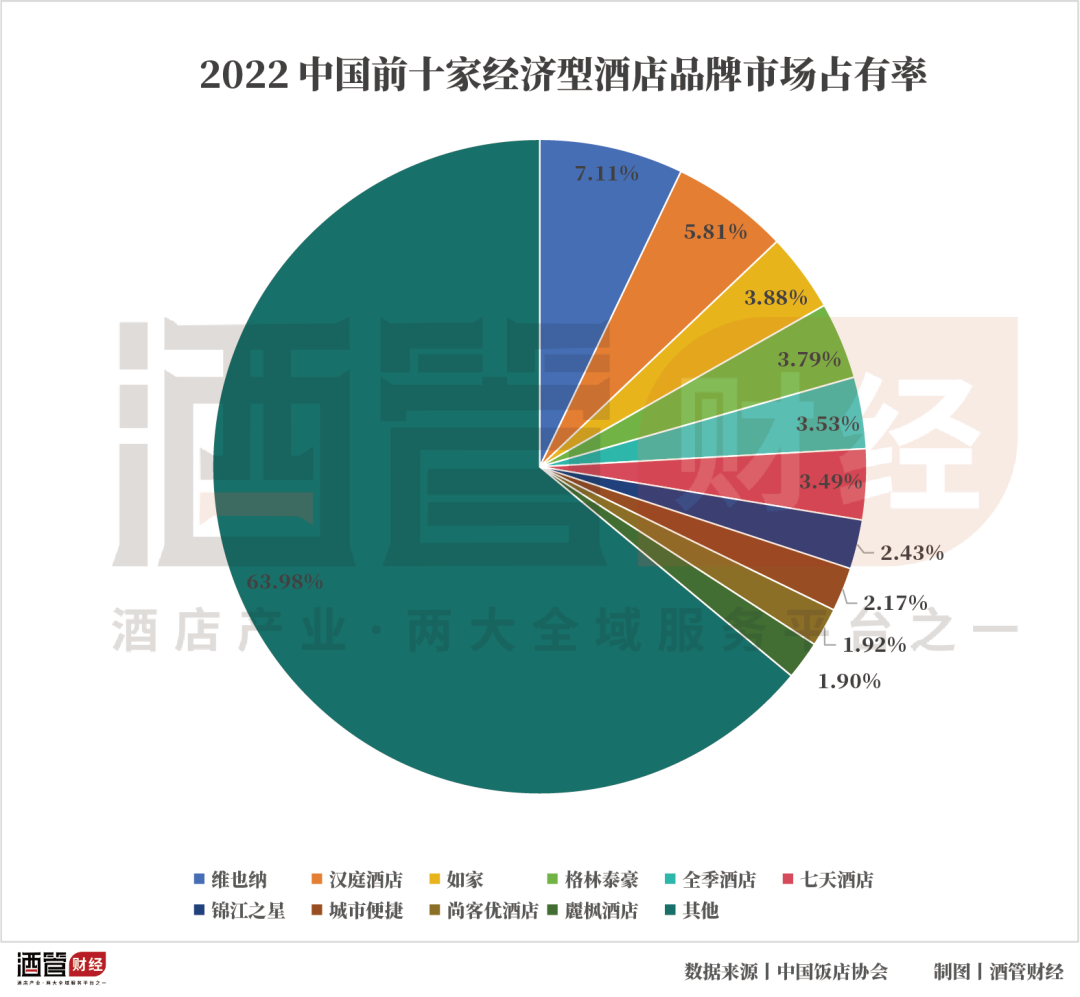据中国饭店业协会发布的《2022年中国酒店集团TOP50报告》显示,2022年格林酒店旗下的品牌,仅有格林豪泰进入了经济型酒店市场占有率榜TOP10。