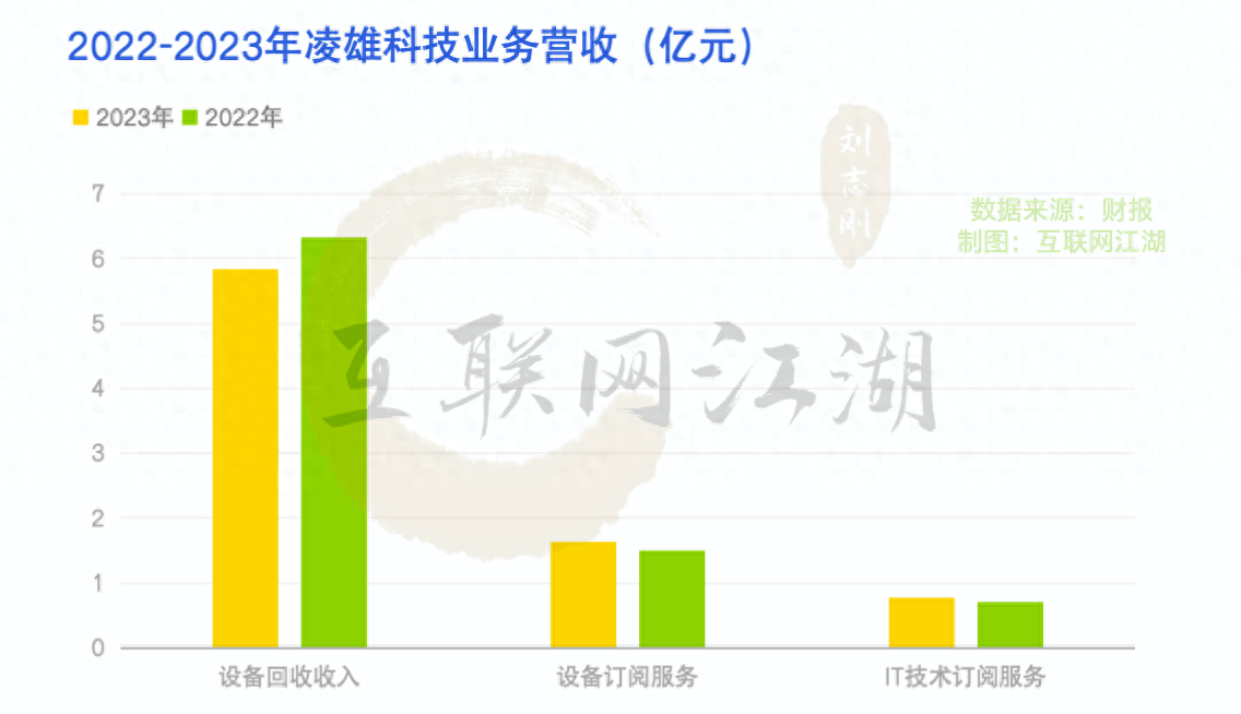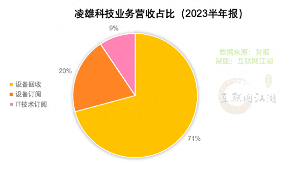 凌雄科技业务主要有三大块:设备回收收入、设备订阅服务、IT技术订阅服务。上半年,三大业务的收入分别为,5.82亿、1.62亿以及0.77亿,业务占比分别为70.8%、19.8%以及9.4%。