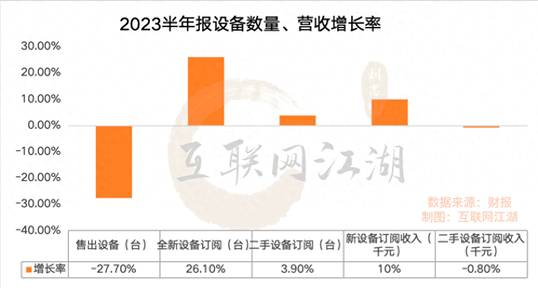 上半年新设备订阅收入增长10%,数量增长26%,二手设备订阅收入下滑了0.8%,数量仅增长了3.9%。