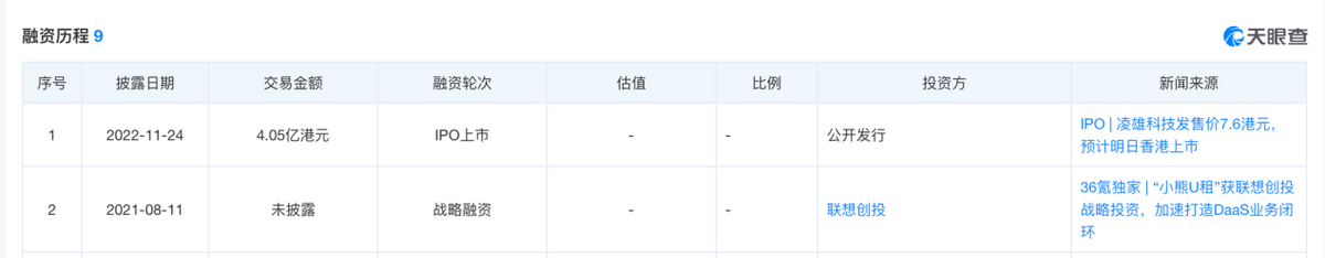 数据显示,上半年公司营收同比减少了3.7%,经调整净亏损扩大了118.4%,二级市场表现也一路下滑。股价从今年最高14.9港元每股,跌至现在的8港元左右。天眼查APP融资信息显示,凌雄科技于2022年11月上市,当时发行价为7.6港元。