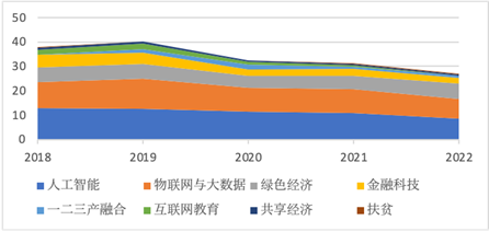 第四,投资下滑并向战略领域集中。2022年创业投资市场投资出现较大下滑。投资方向从辐射“泛科技”逐渐发展至专注“硬科技”。高新技术领域的项目投资占比接近70%,其中,投资于新能源、半导体和生物科技领域的占比分别为14.0%、13.9%、8.1%。投资领域的集中度越来越高。