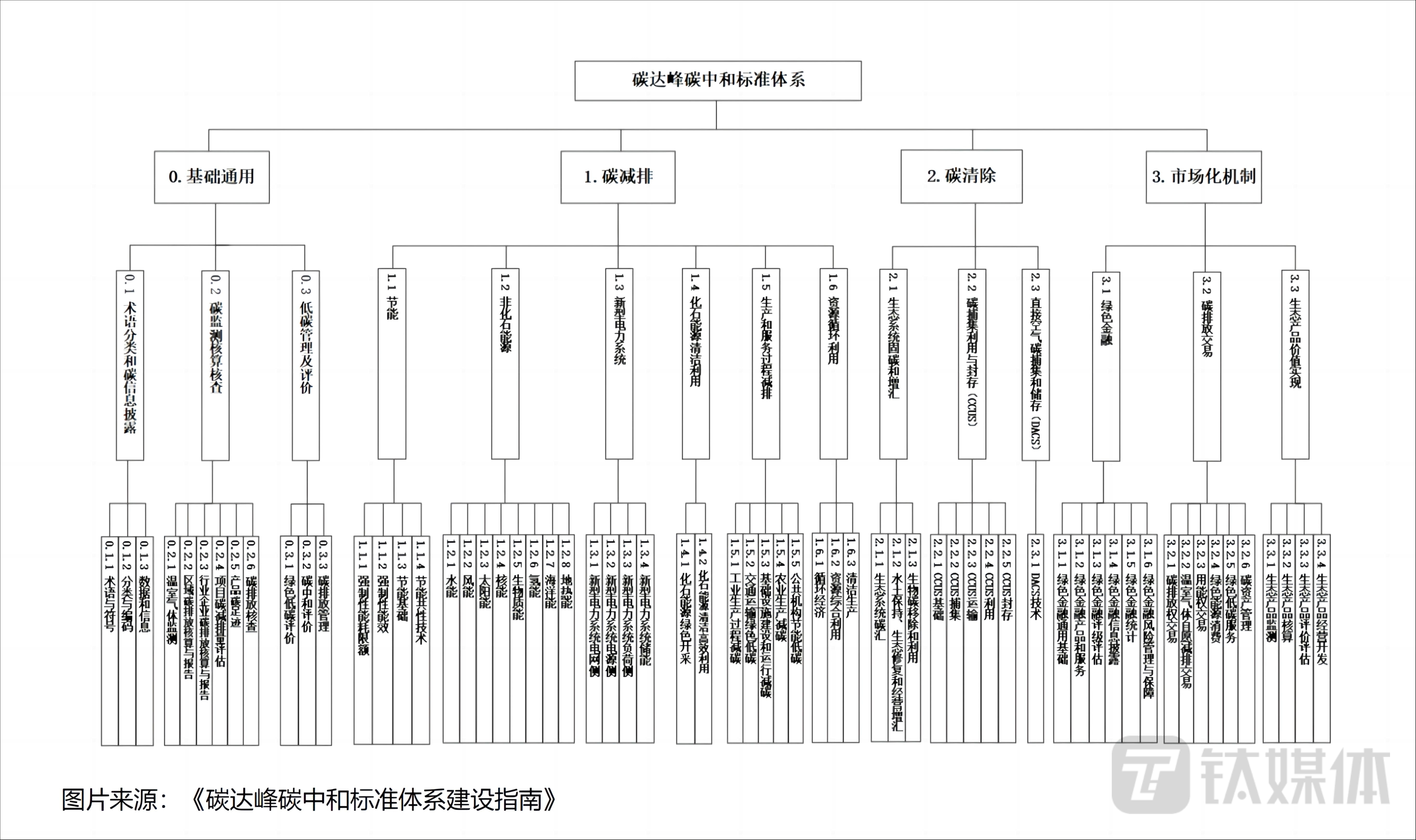 对于我国来说,碳中和相关标准仍在建设、完善过程之中,今年4月22日,国家标准委、国家发展改革委、工业和信息化部等11个部门联合发布了《碳达峰碳中和标准体系建设指南》,提出了到2025年,制修订不少于1000项国家标准和行业标准,与国际标准一致性程度显著提高,主要行业碳核算核查实现标准全覆盖的主要目标,并发布了包含4大一级子体系、15个二级子体系、63个三级子体系的标准体系框架。