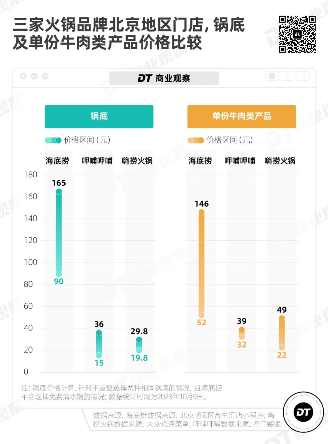 从菜品定价上来看,客单价80元左右的嗨捞火锅,定价对标的不是海底捞,而更接近于上半年客单价58.4元的呷哺呷哺。