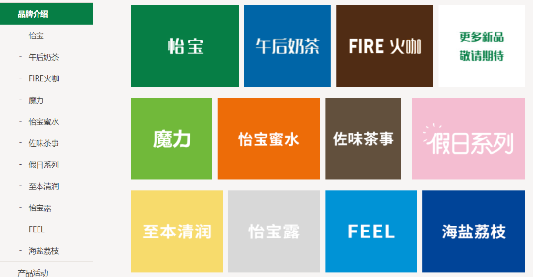 官网显示,目前华润怡宝旗下拥有“怡宝”“午后奶茶”“FIRE火咖”“魔力”“怡宝蜜水”“佐味茶事”等多个品牌,覆盖了纯净水、奶茶、咖啡、功能性饮料等多品类。