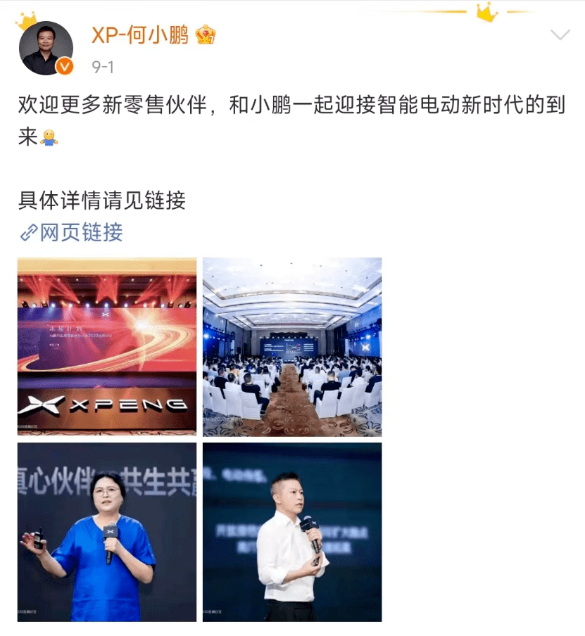 在更早些时间,小鹏汽车CEO何小鹏本人直接发微博写道:“欢迎更多新零售伙伴,和小鹏一起迎接智能电动新时代的到来。”