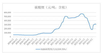 钛媒体APP注意到,吉锐科技利润的暴增或许将中断。吉锐科技的毛利率主要系受镍、钴、锂等金属或金属盐市场价格波动、产品定价机制、部分产品产能释放等因素影响所致。2020年初,碳酸锂的价格不足10万元/吨,之后就一路飙升,进入2022年后,更是飙升至近60万元/吨,而到2023年,碳酸锂的价格开始大幅跳水,截至2023年5月,价格约为30万元/吨,较高峰时几乎已经折腰。![]()