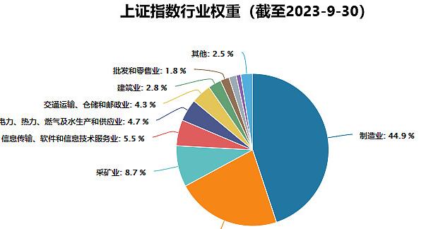 最新的上证指数构成中,制造业占到45%,压倒性的第一行业。