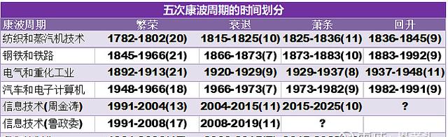 按照周金涛的思路,这一轮大的康波周期的起点是1991年,中间衰退和萧条期时间点跟我们的判断有所不同,但萧条期终点是一致的,同样都是指向2025年。