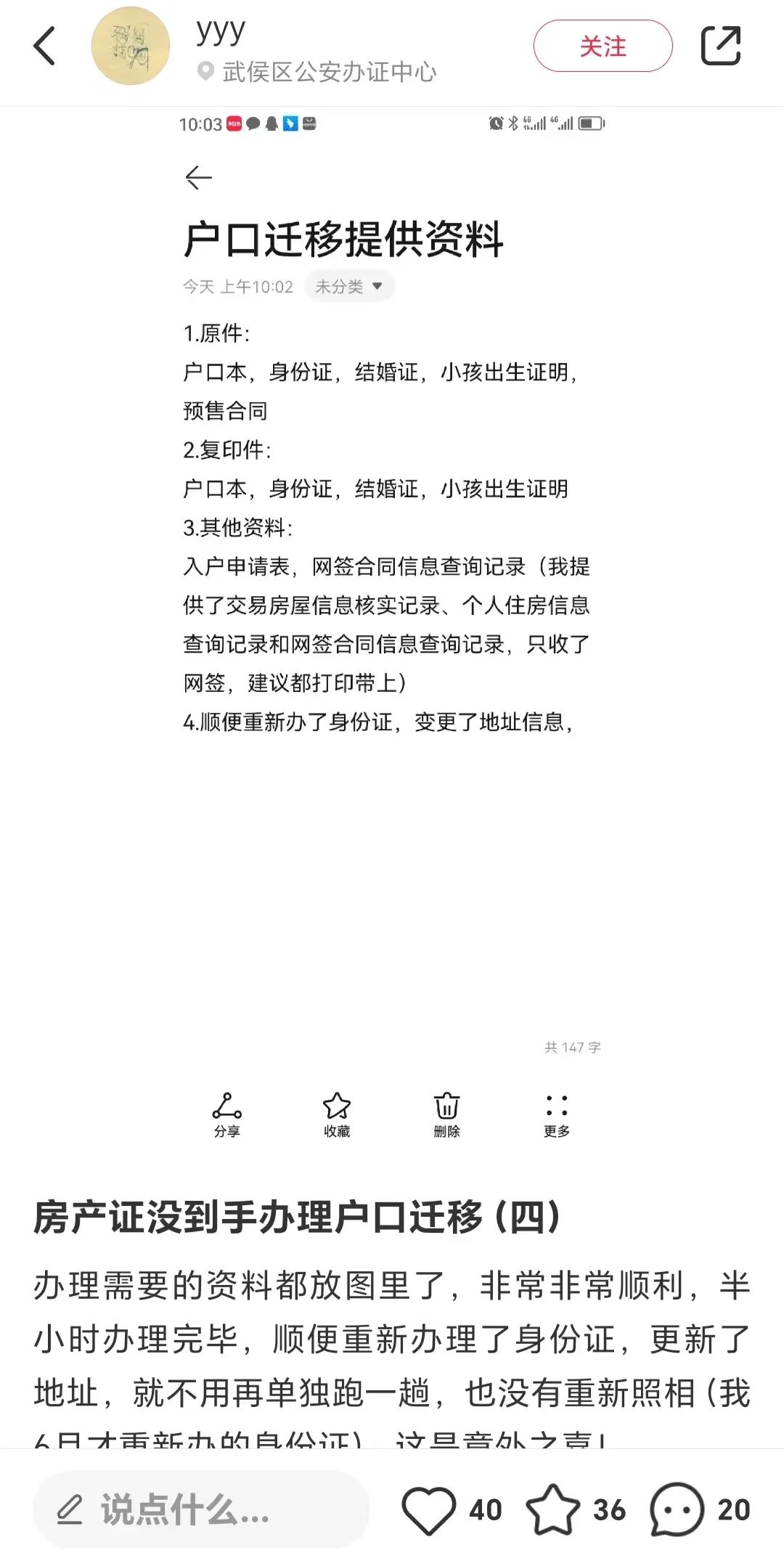 而且不同的人情况也不同,有农转非、非转农、还有孩子随父母,流程都有差异,总之非常麻烦。但李阳在小红书上找到了很清楚的攻略,有姐妹直接整理好了流程和要点,他按照教程跑了两趟就把事办妥了。
