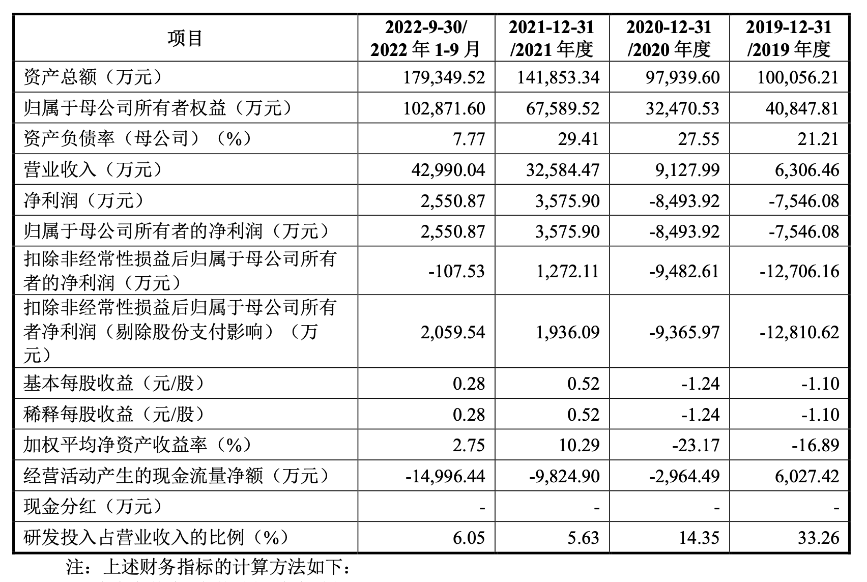 招股书显示,2019-2021年及2022年前三季度,中兴新材分别实现营业收入6306.46万、9127.99万、3.26亿、4.3亿元;净利润为-7546.08万、-8493.92万、3575.90万、2550.87万元。