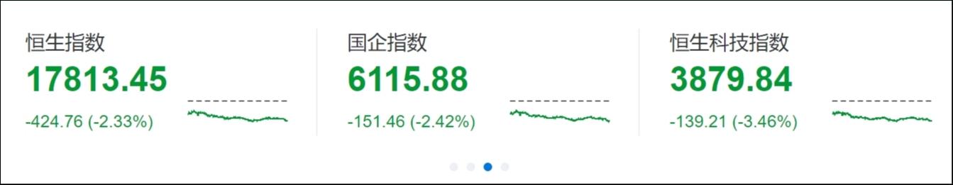 受此影响,今日(10月13日)港股开盘后,恒生指数、恒生科技指数均呈低开低走态势。截至收盘,恒生指数跌2.33%,恒生科技指数跌3.46%。![]()