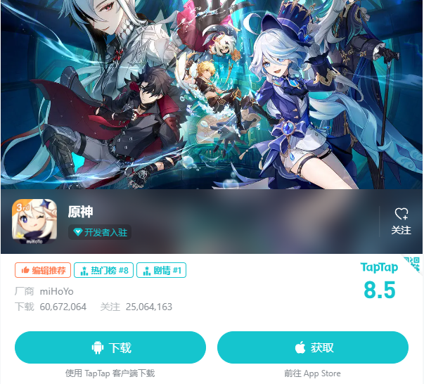而在移动端,除开App Store之外,《原神》基本只保留了三个下载途径:官网、TapTap和B站。