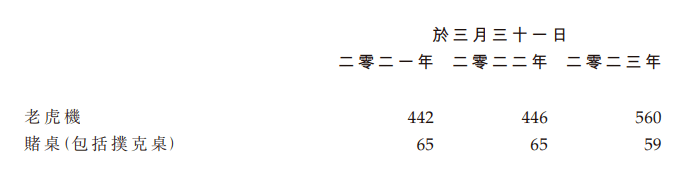 百乐皇宫博彩业务主要分为老虎机以及赌桌两类,老虎机为公司博彩贡献了主要收入来源。