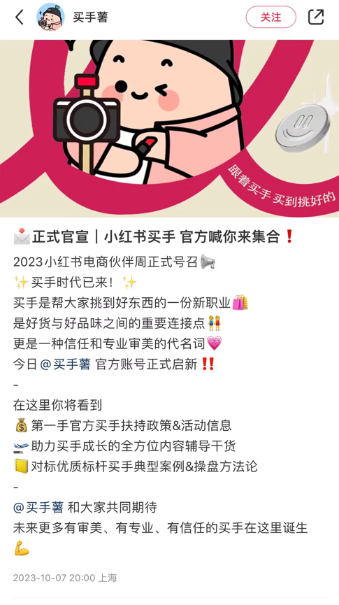 今年10月初,小红书还开通了账号“买手薯”,为买手们提供各类政策和信息以及干货。